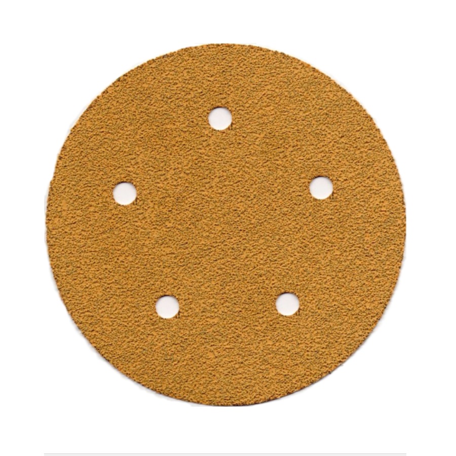 SAIC Gold Velcro-Backed Discs 5″ Dia, 5 Holes, Grits 40 – 600, 100/Pack